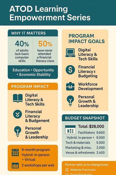 The Pathways to Progress series is a structured educational initiative providing practical workshops and resources for underserved communities. The program focuses on digital literacy, financial education, workforce development, and personal growth to break cycles of poverty and build sustainable futures.